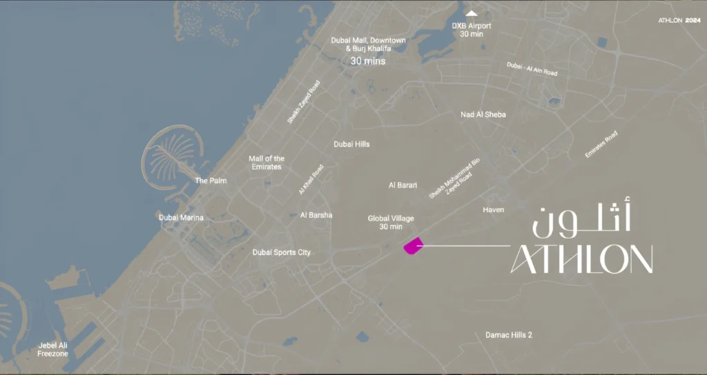 Athlon is situated in Dubailand, a thriving district known for its mix of residential, leisure, and entertainment options. Key destinations include: