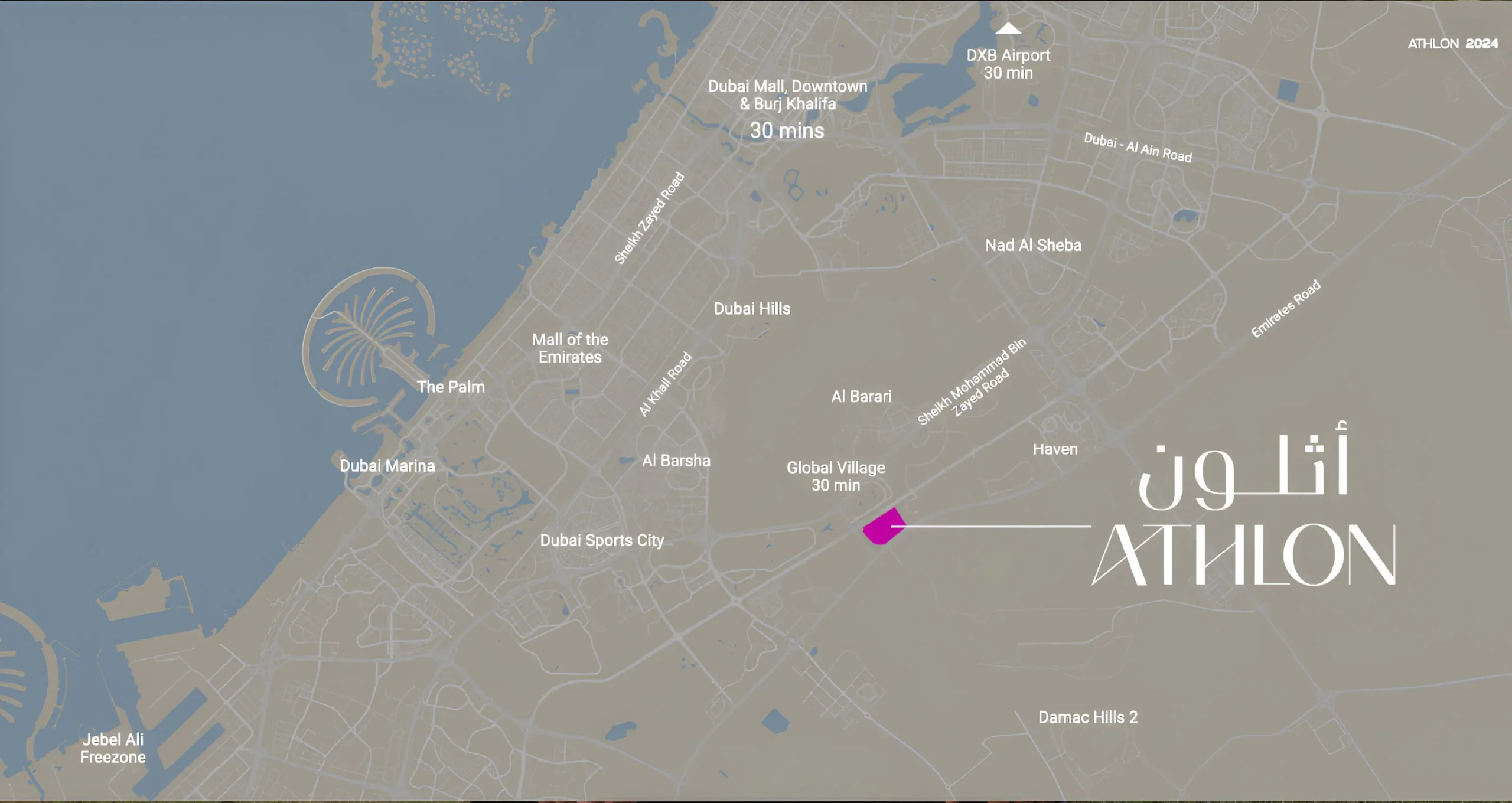Athlon is situated in Dubailand, a thriving district known for its mix of residential, leisure, and entertainment options. Key destinations include: