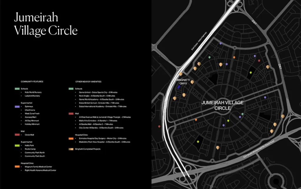 Situated in Jumeirah Village Circle, Binghatti Onyx boasts excellent connectivity and accessibility: