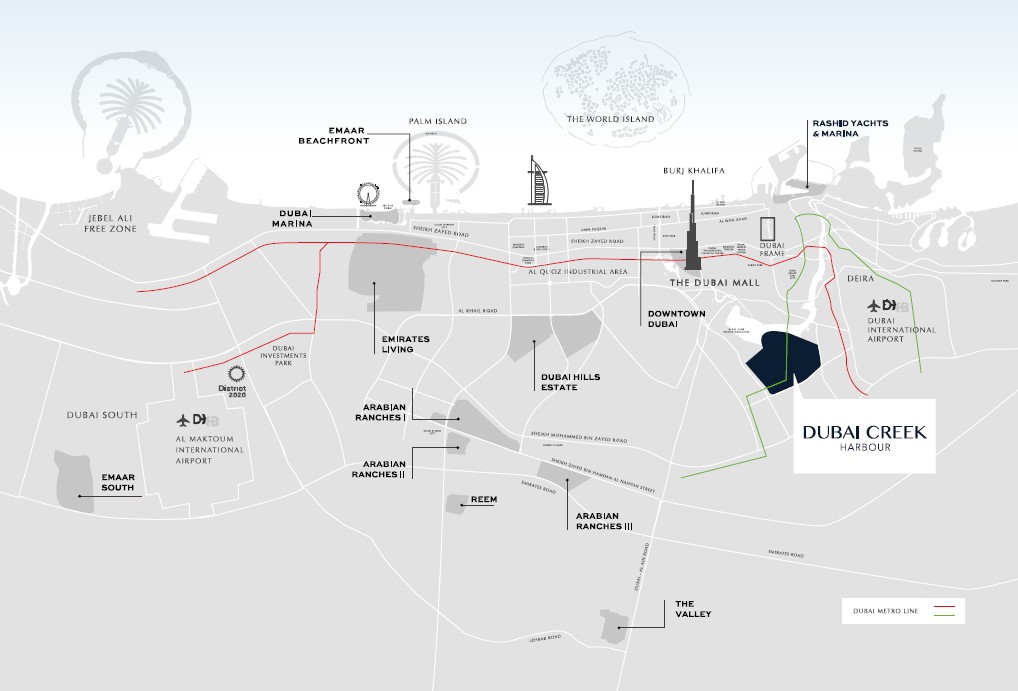 This central location ensures residents have easy access to all of Dubai’s iconic destinations while enjoying the tranquil ambiance of Dubai Creek Harbour.