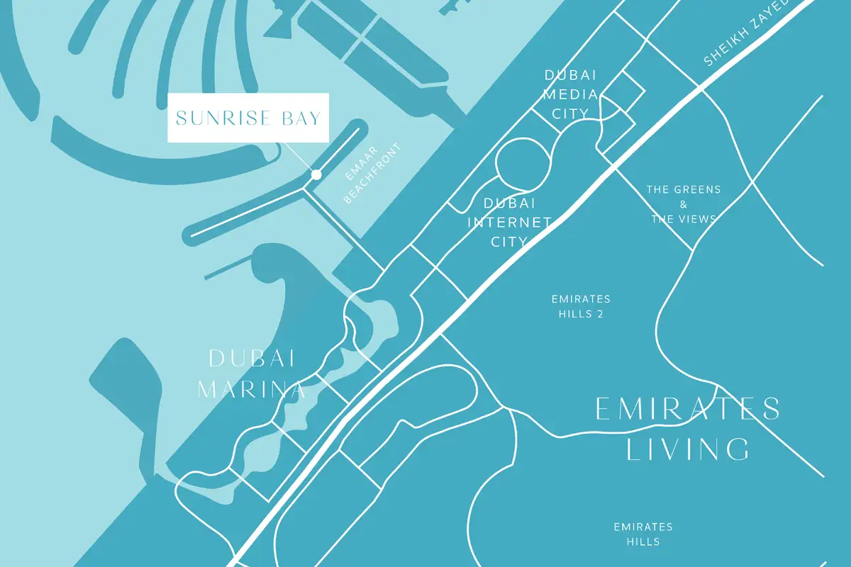 Strategically located in Emaar Beachfront, Sunrise Bay offers exceptional connectivity and convenience: